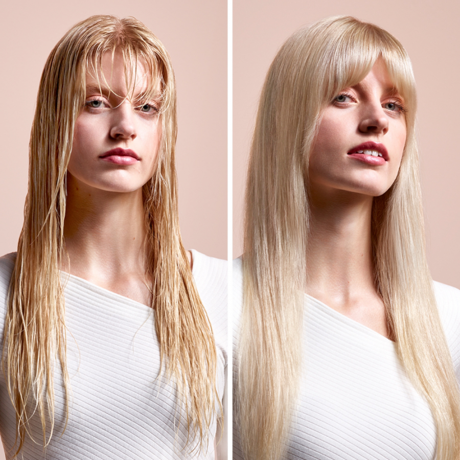Στεγνώνει και ισιώνει τα μαλλιά ταυτόχρονα, με αέρα. Χωρίς φθορά από τη θερμότητα.