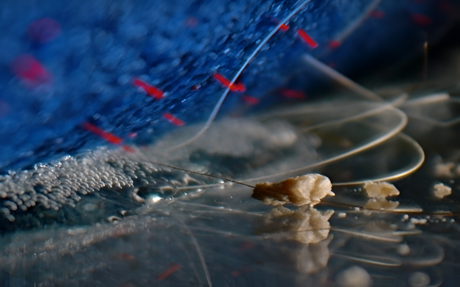 Πυκνές μικροΐνες αλληλοσυνδέονται σχηματίζοντας μικροσκοπικές δομές που μοιάζουν με γάντζους.