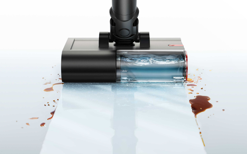 - Κεφαλή καθαρισμού με υγρό κύλινδρο 64.000 μικροϊνών σφουγγαρίζει τα σκληρά δάπεδα με καθαρό νερό από την αρχή ως το τέλος. Διαθέτει δοχείο για το καθαρό νερό (300 ml) και ένα δοχείο συλλογής του βρώμικου νερού (340 ml)